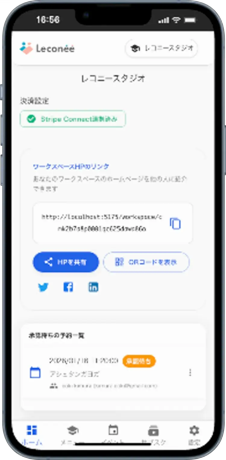 生徒からの予約申し込みを承認し、スケジュールを一元管理できます。予約の承認時に自動で決済が処理されるため、手間なく運営できます。ワークスペースごとにキャンセルルールを設定することも可能です。